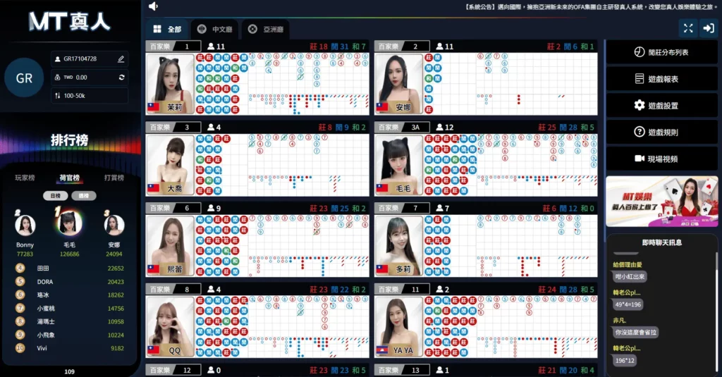 MT真人專注於台灣市場,並且提供台灣荷官的真人直播遊戲與線上聊天系統,玩家可以與線上荷官訊息對話,提升玩家遊戲參與度!